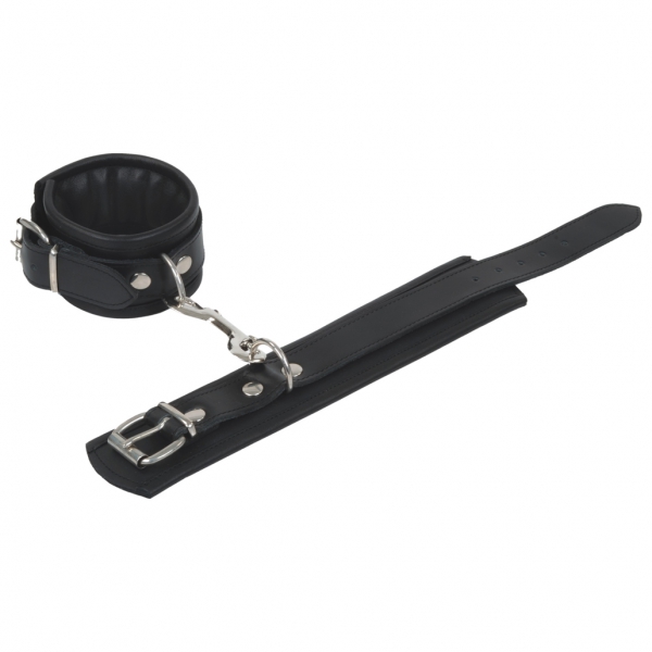 Die Fußfesseln mit Karabiner sind ein robustes Accessoire für besondere Erlebnisse. Die Außenseite besteht aus festem, stabilen Rindsleder, während die Innenseite zu 80% aus weichem Polyester und zu 20% aus Elastan gefertigt ist. Der Ring ist verschweißt, was zusätzliche Stabilität bietet. Die Fesseln lassen sich leicht an- und ablegen und sind vielseitig einsetzbar, sei es zur Fixierung oder als modisches Statement.